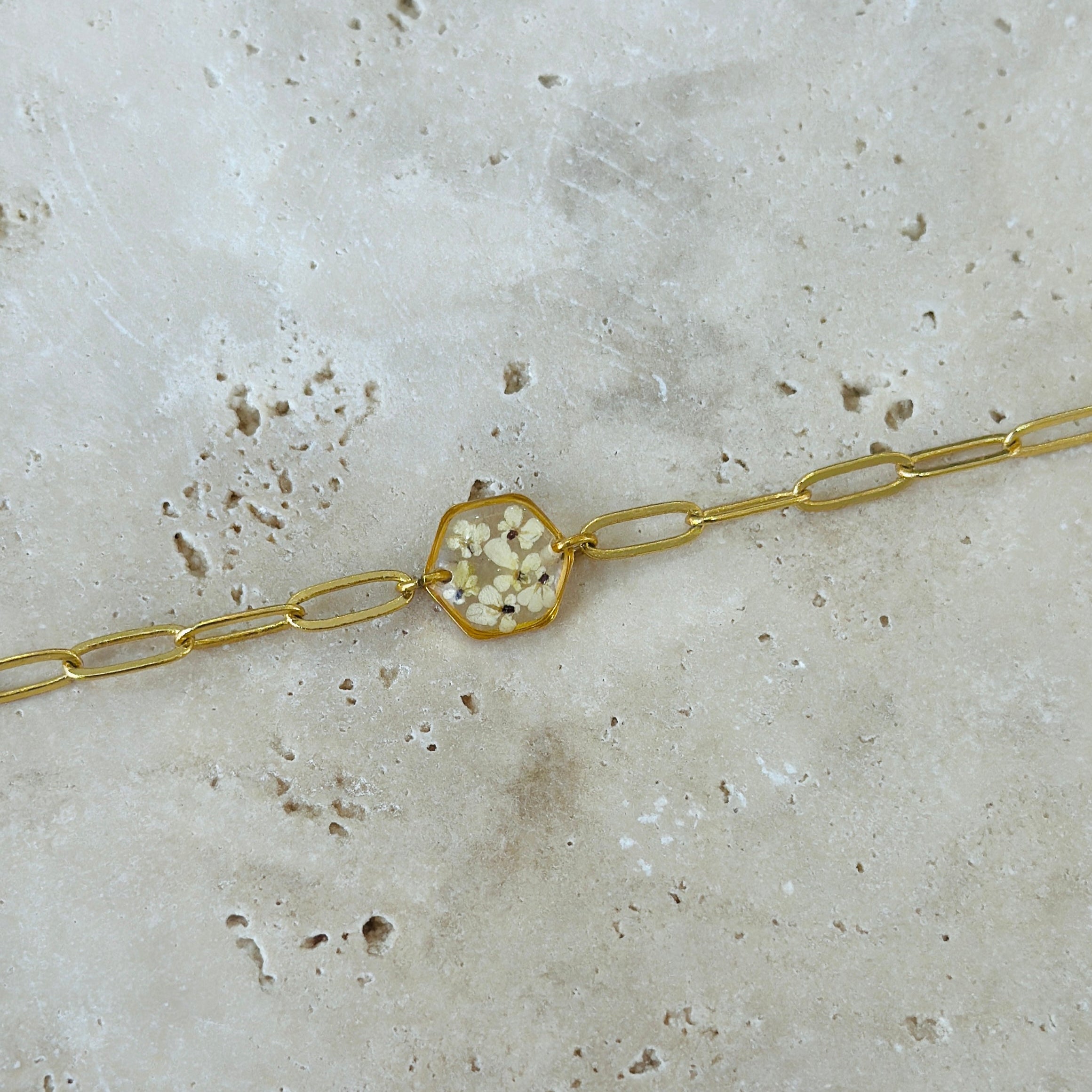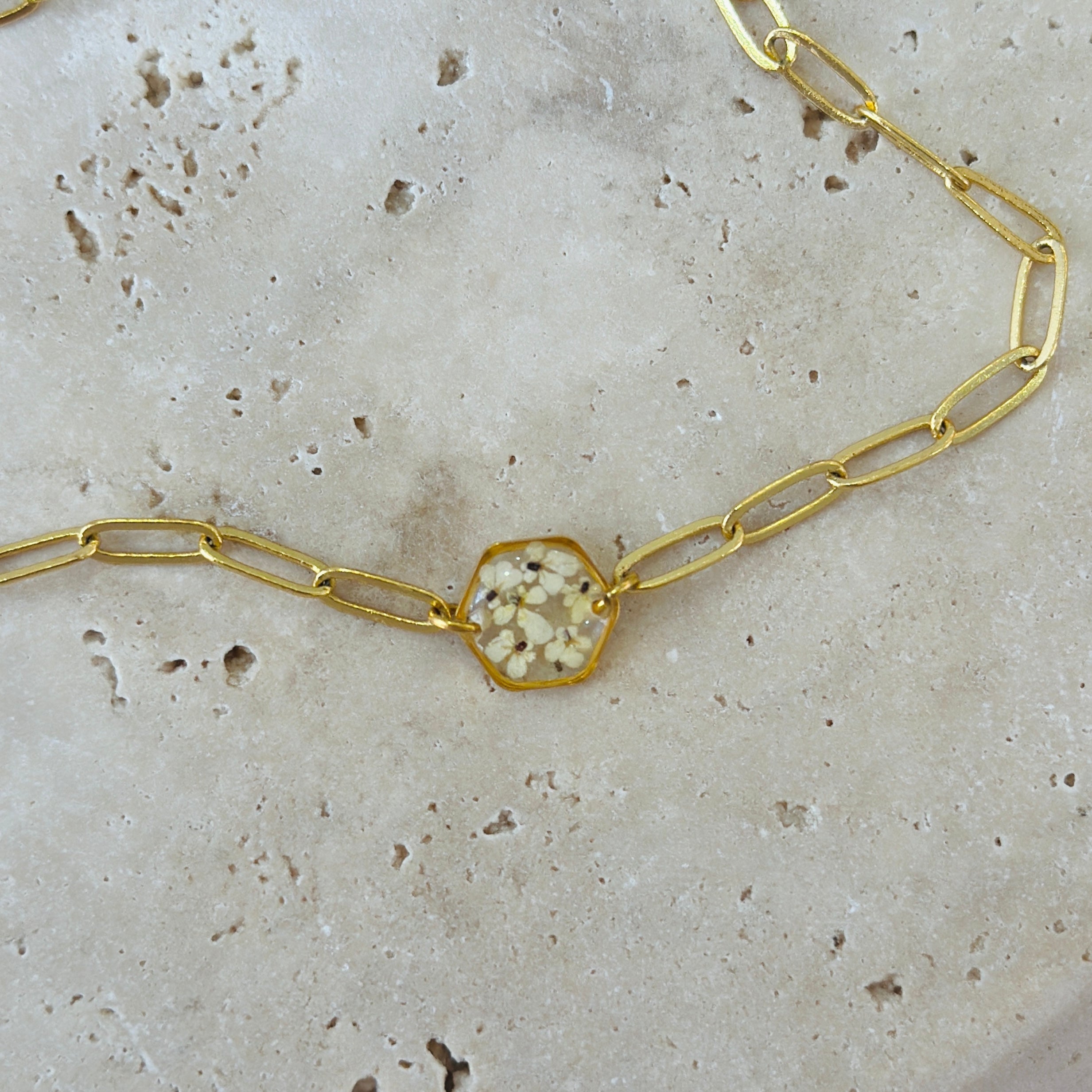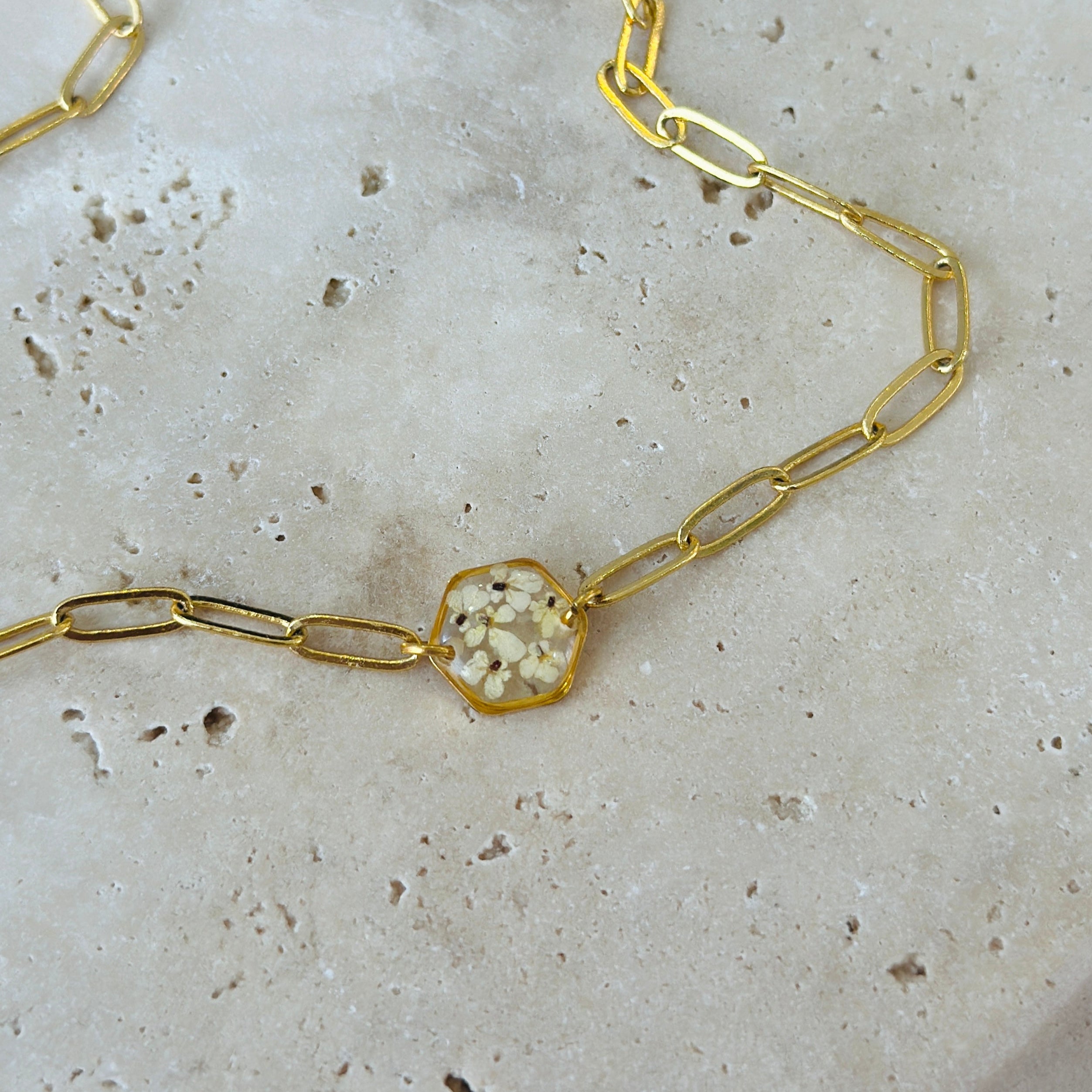 After the flowers have completed the drying process, each one is carefully cut into tiny pieces. Each flower piece is fixed with resin and protected. In this way, the elegant texture of nature is preserved for a long time and becomes immortal in the jewelry. Every detail is meticulously processed and gives life to the jewelry.