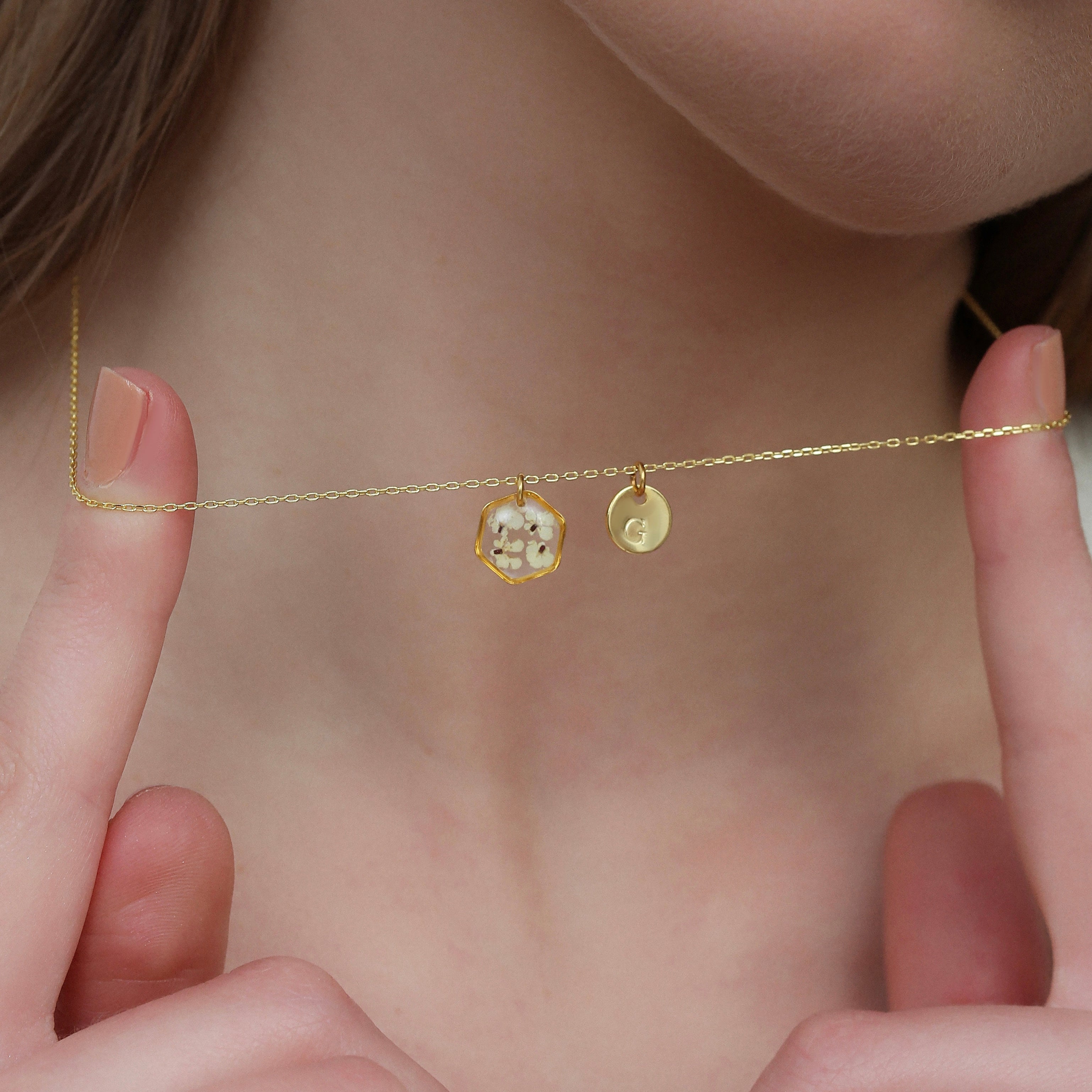 After the flowers have completed the drying process, each one is carefully cut into tiny pieces. Each flower piece is fixed with resin and protected. In this way, the elegant texture of nature is preserved for a long time and becomes immortal in the jewelry. Every detail is meticulously processed and gives life to the jewelry.