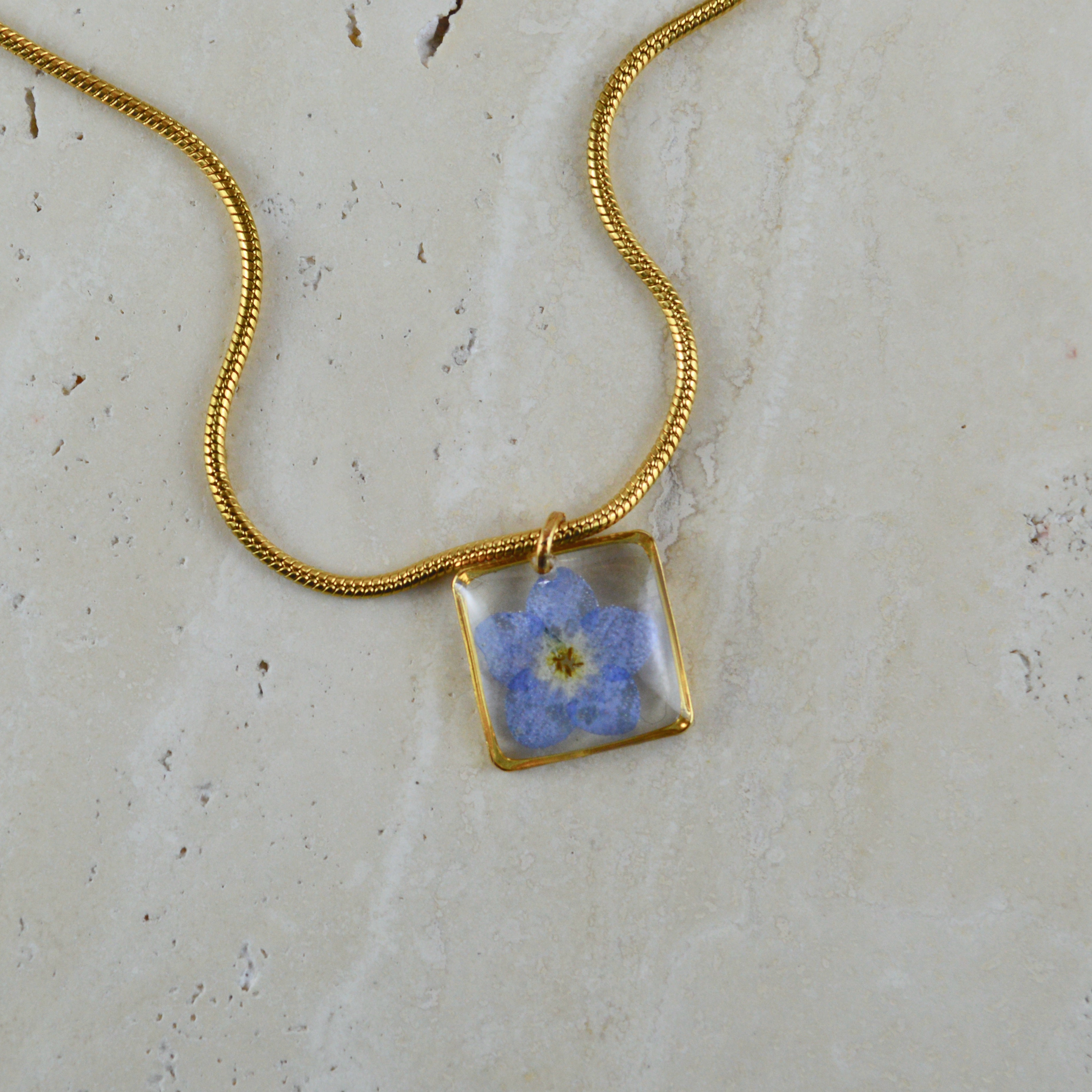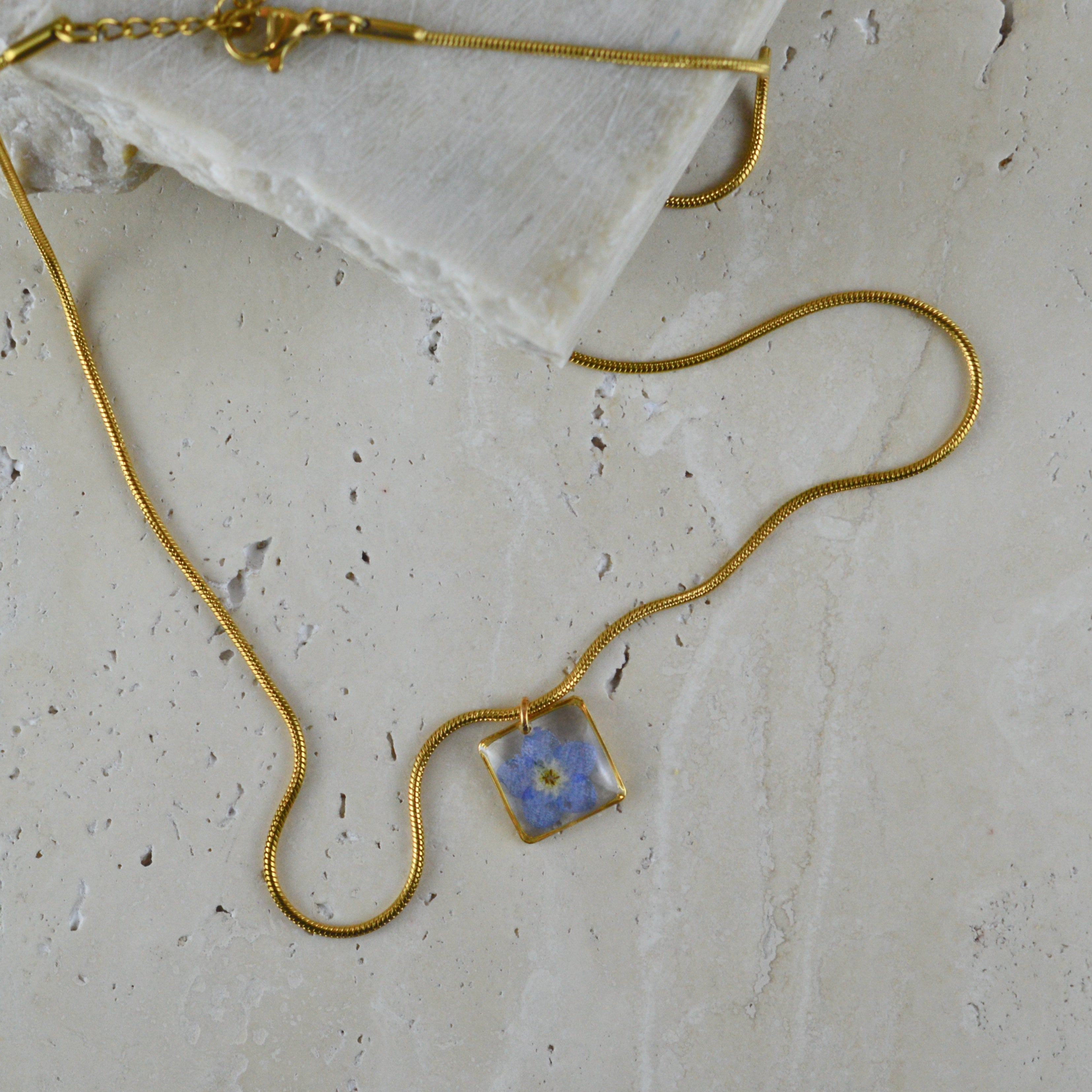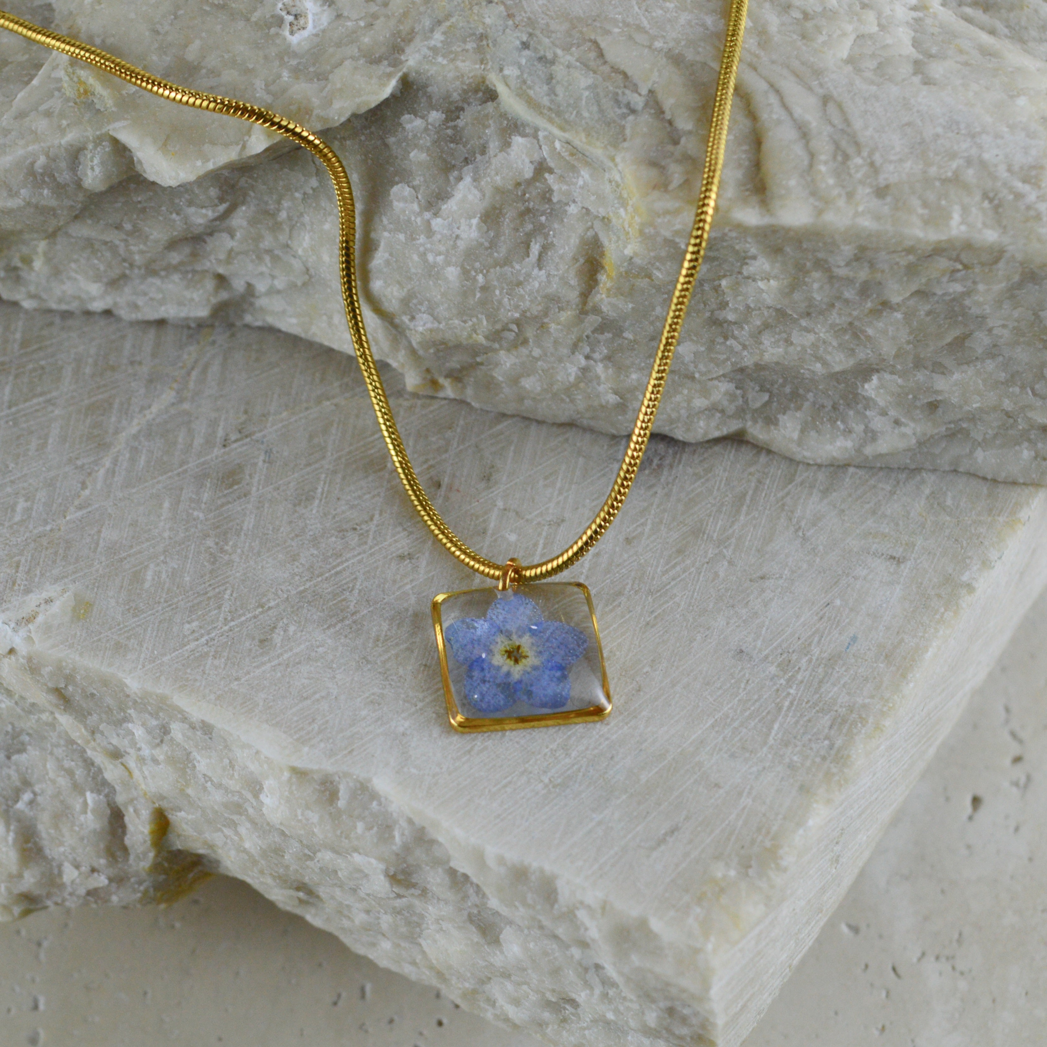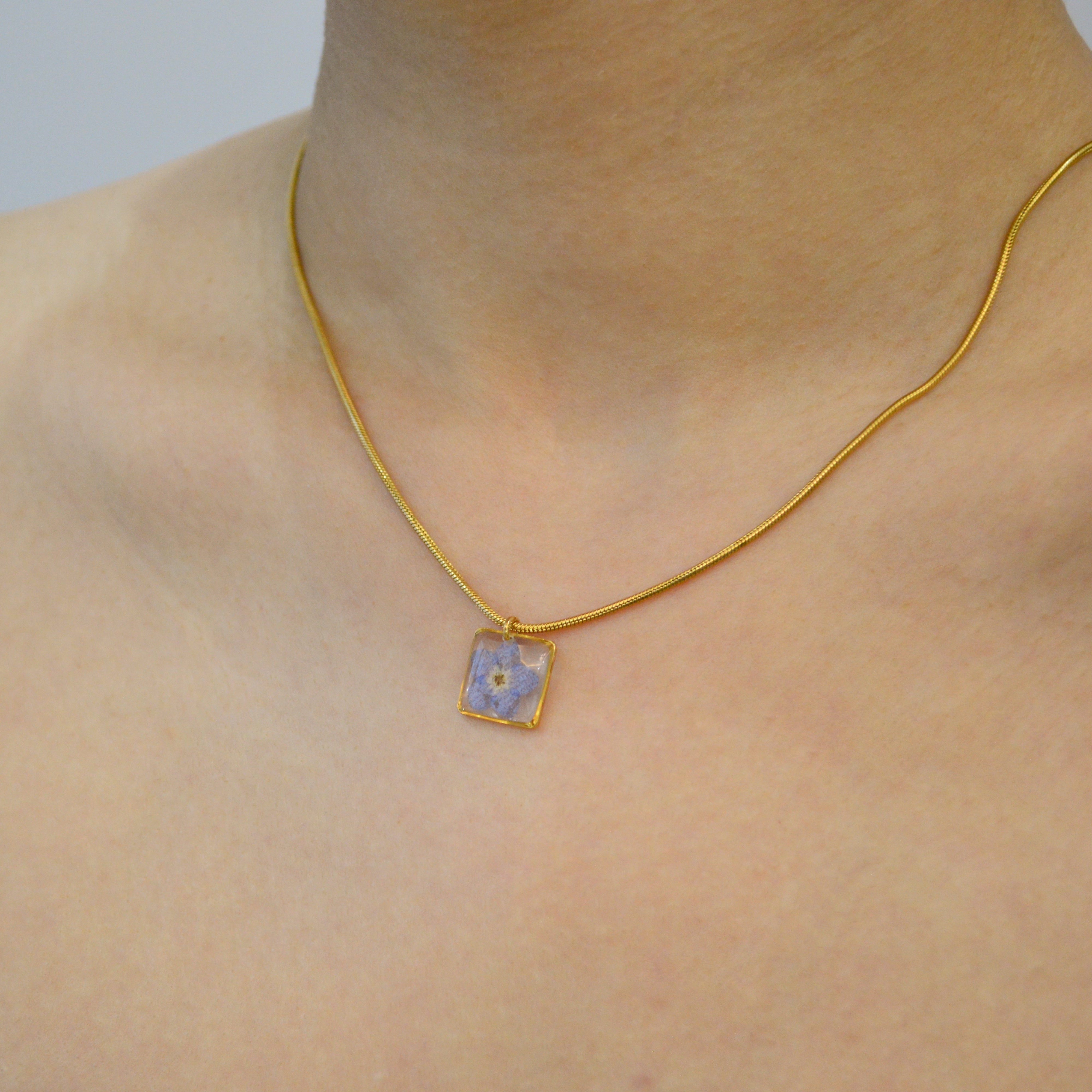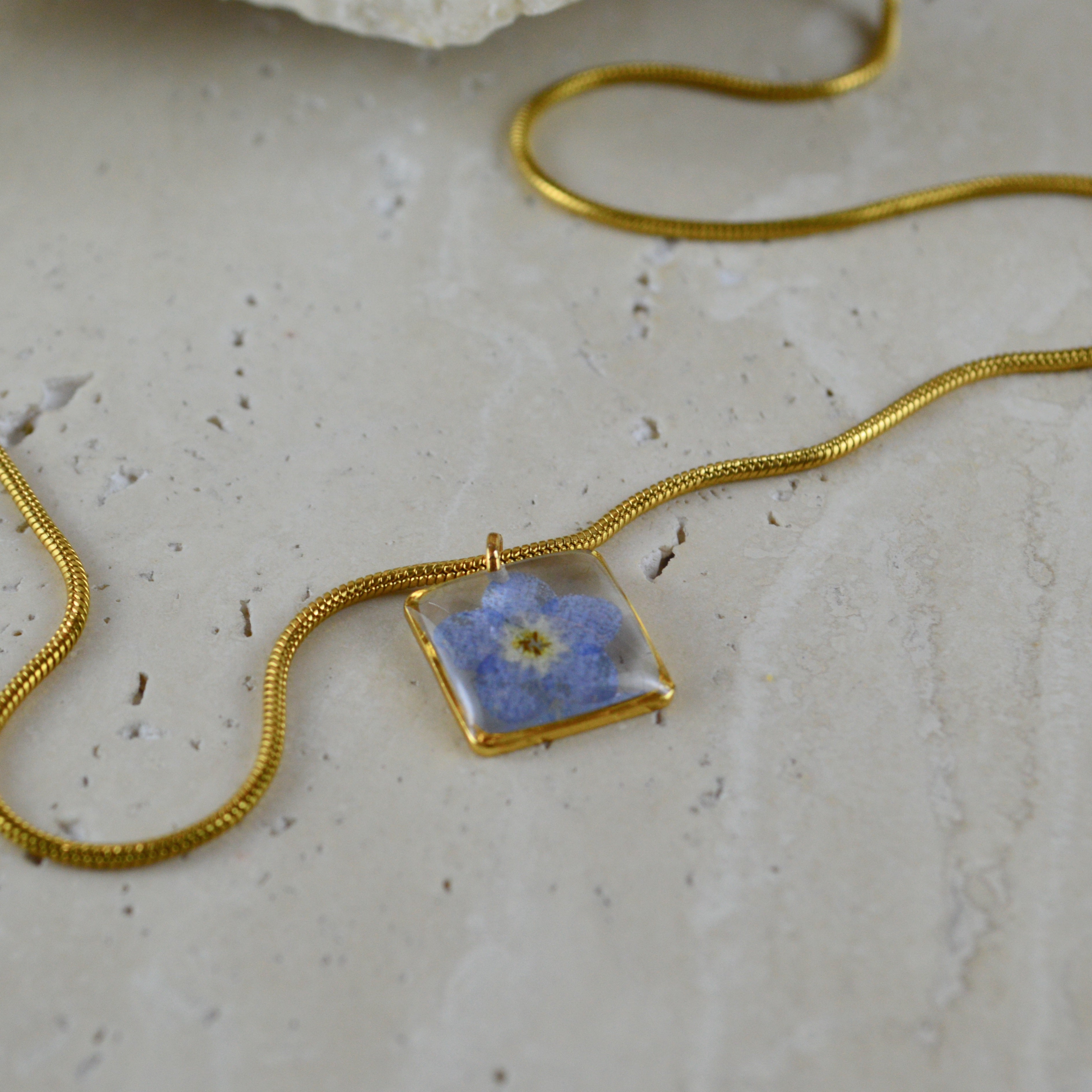 After the flowers have completed the drying process, each one is carefully cut into tiny pieces. Each flower piece is fixed with resin and protected. In this way, the elegant texture of nature is preserved for a long time and becomes immortal in the jewelry. Every detail is meticulously processed and gives life to the jewelry.