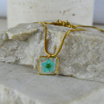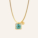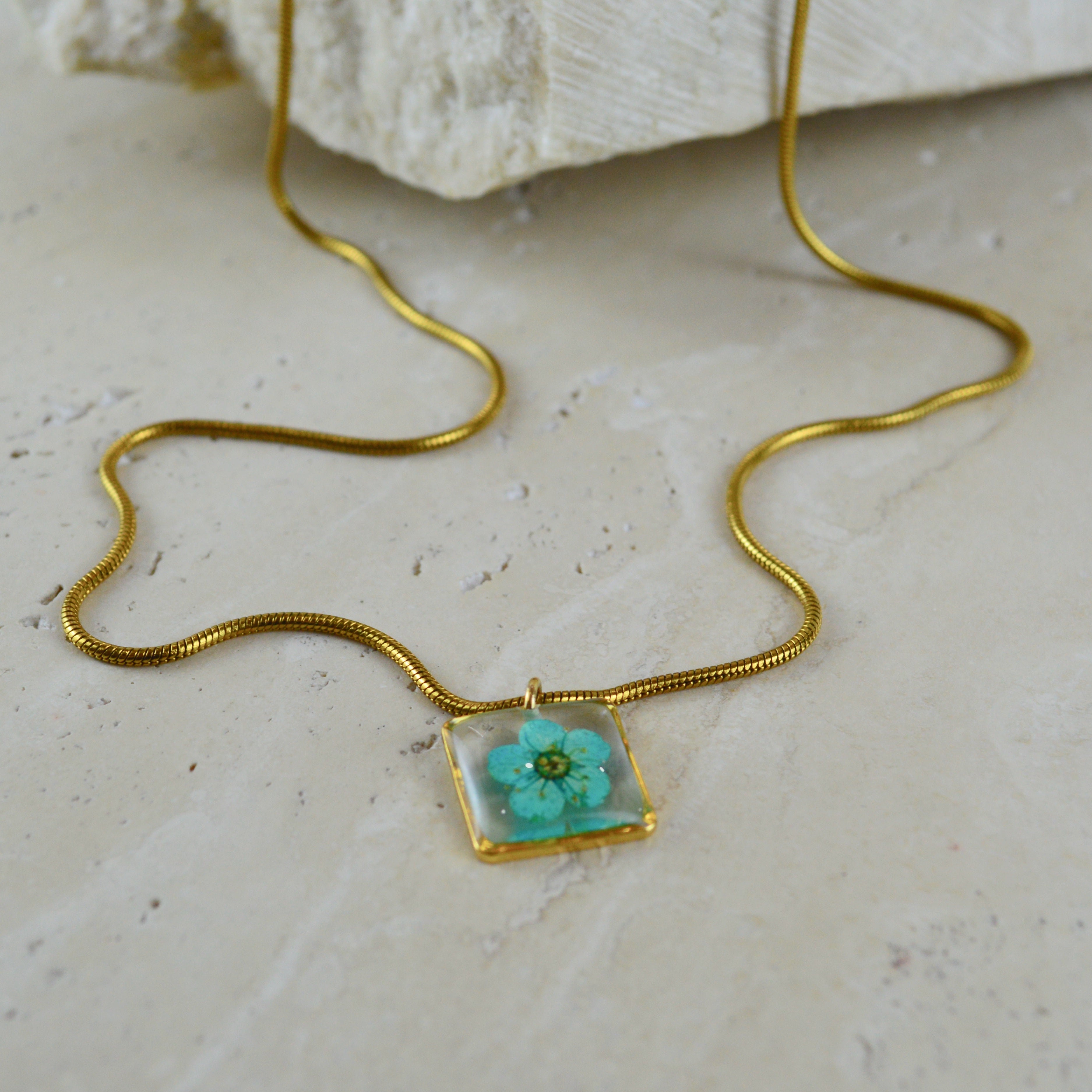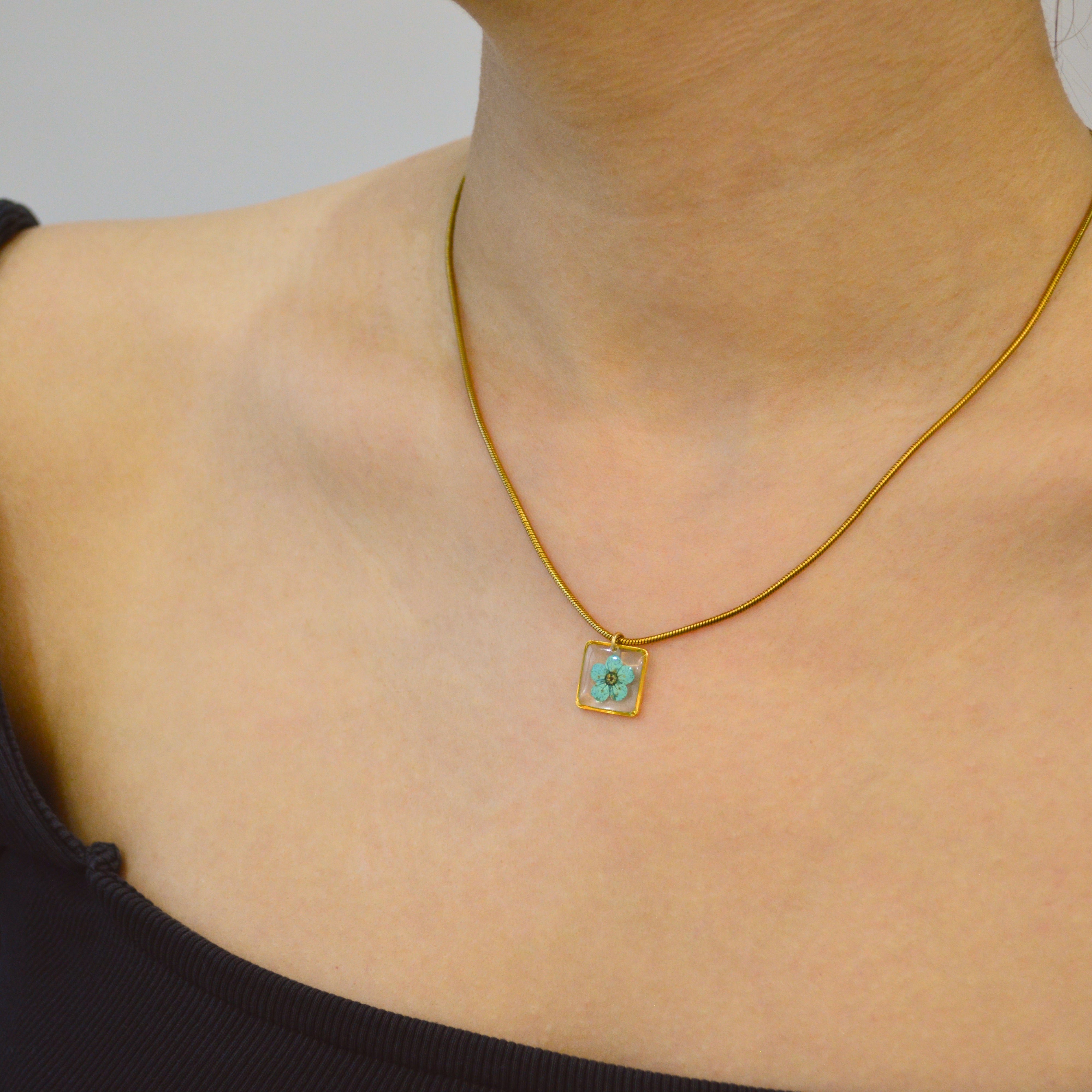 After the flowers have completed the drying process, each one is carefully cut into tiny pieces. Each flower piece is fixed with resin and protected. In this way, the elegant texture of nature is preserved for a long time and becomes immortal in the jewelry. Every detail is meticulously processed and gives life to the jewelry.