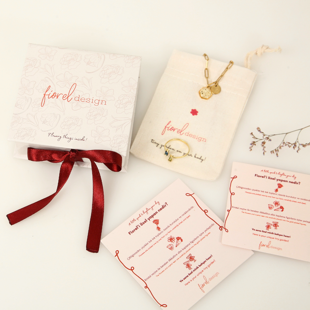 Son adımda, bu benzersiz çiçek parçaları, üstün kaliteli altın kaplama materyallerle birleşir. Her takı, birer kişisel bahçe gibi tasarlanır. Fiorel takıları, sadece bir aksesuar değil, aynı zamanda her bireye özel, zarif ve anlamlı bir hikaye sunar. Her ürün, bir çiçek gibi nadir ve değerli, size özel bir dokunuş taşır.